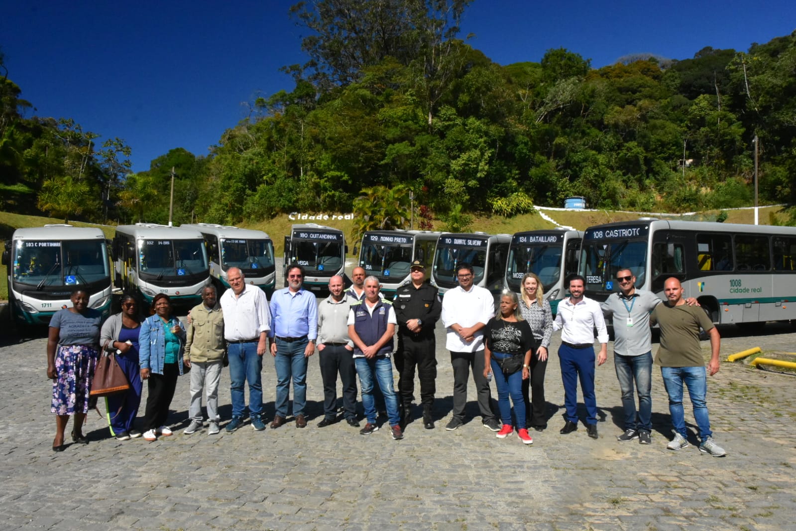 prefeito Rubens Bomtempo participou da ação pelo Dia do Rodoviário na garagem da Petro Ita, onde conheceu os cinco ônibus seminovos adquiridos pela empresa. Os veículos entraram em operação na segunda-feira (17) e estão reforçando a circulação nas regiões do Independência, Meio da Serra, Rio de Janeiro e São Sebastião. Dos 48 ônibus destruídos no incêndio na garagem da Petro Ita e Cascatinha, 45 foram repostos.