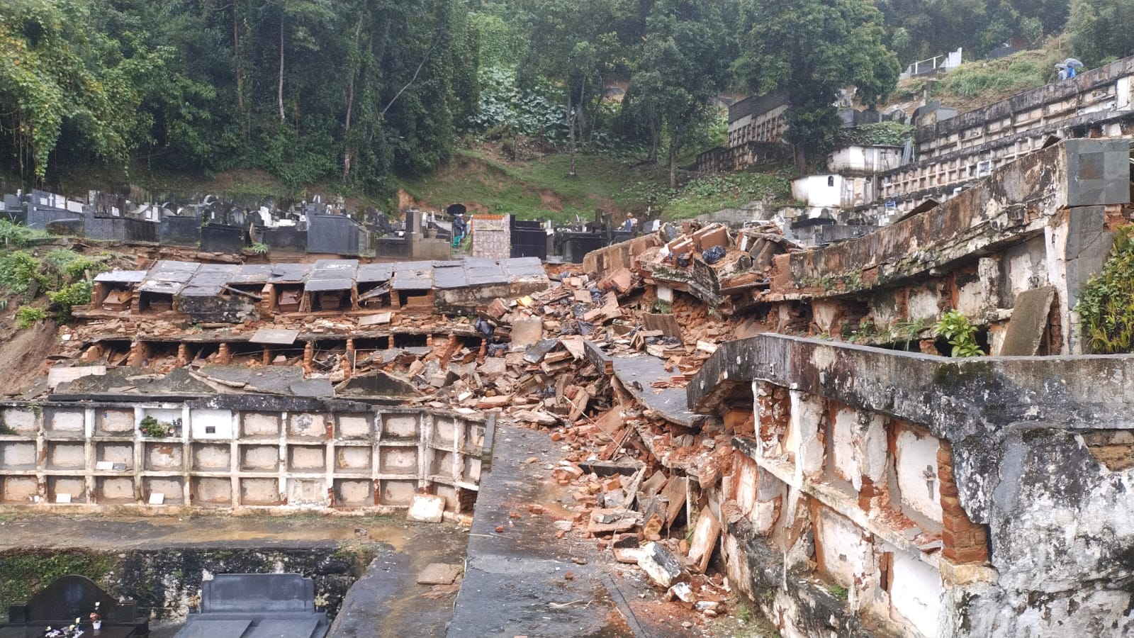 O principal cemitério de Petrópolis, na Rua Fabrício de Matos, no Centro, também sofreu as consequências das chuvas que caem desde a quinta-feira na cidade. Sem estrutura adequada e alvo de críticas constantes devido a falta de conservação, o lugar não resistiu ao temporal.