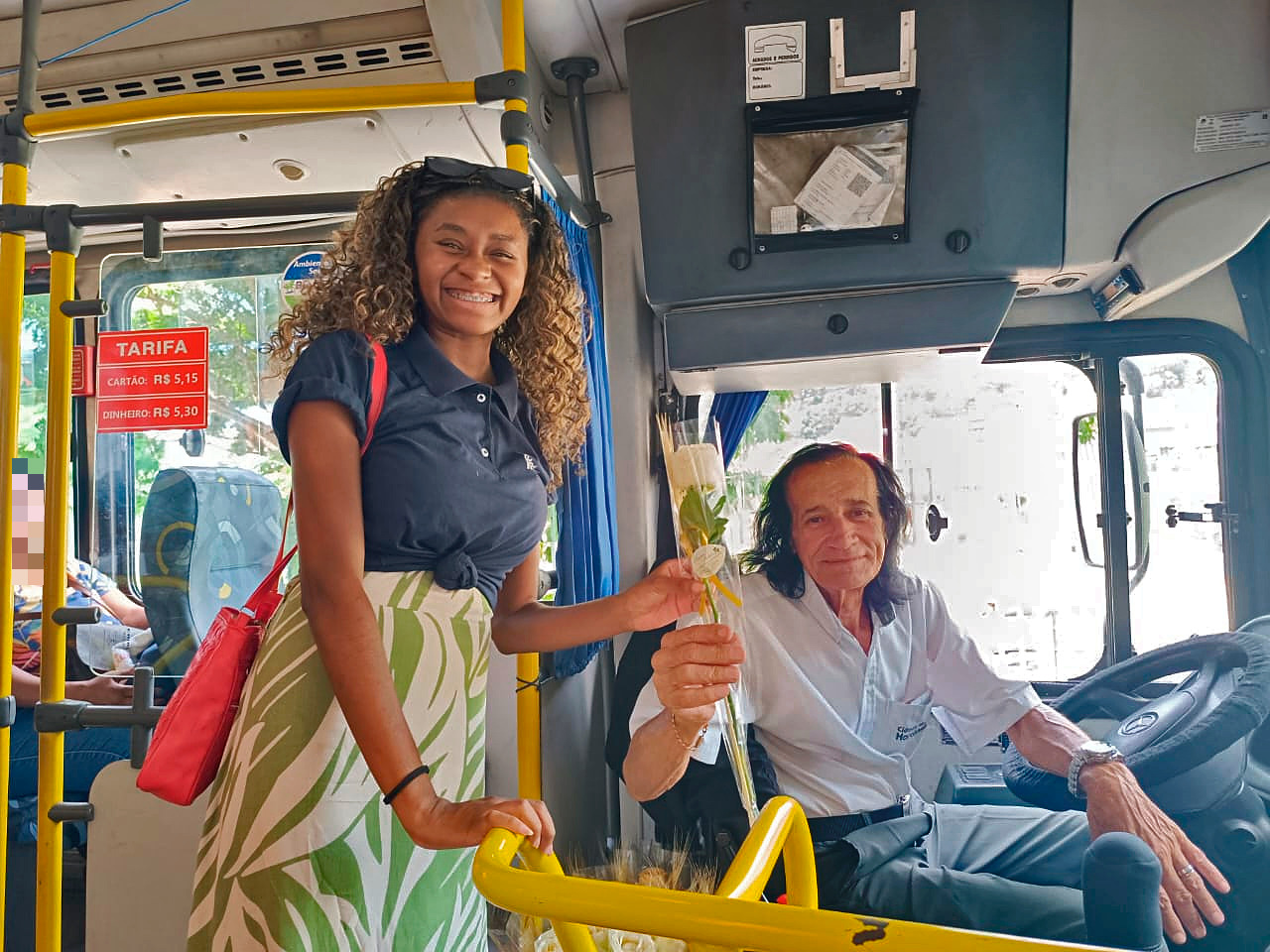 “Conversamos com ele que, imediatamente, topou fazer a brincadeira com muito carinho. Ao todo, distribuímos 100 rosas, recebendo uma série de agradecimentos e elogios das nossas passageiras, que se tornaram fãs do nosso motorista, que atua na empresa há uma década”, disse a psicóloga.